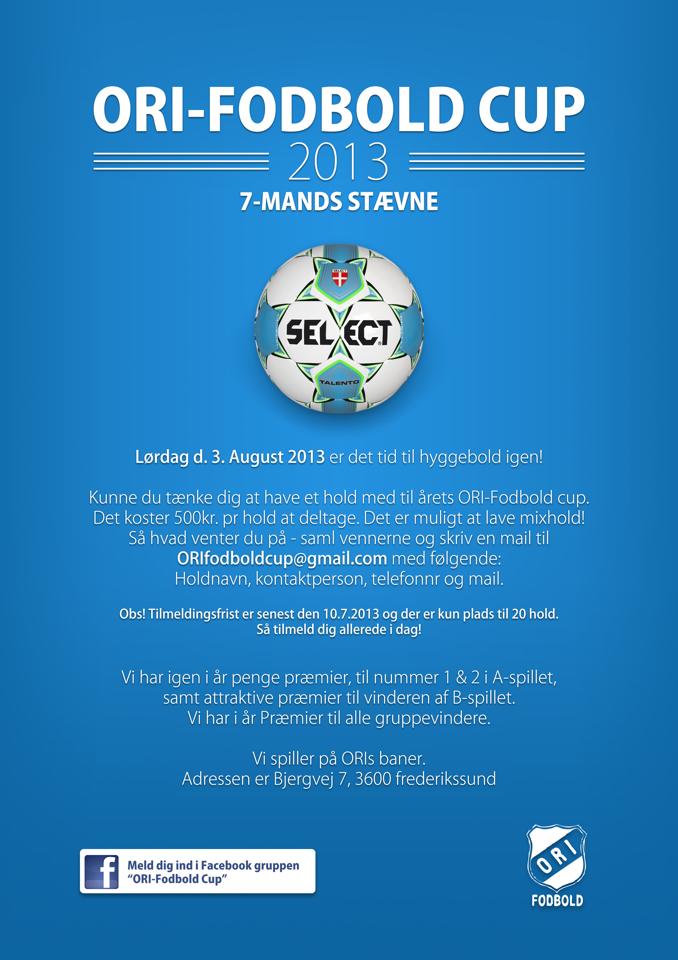 Nu er det tid til hyggebold igen! Lørdag den 3. august gennemføres ORI-FODBOLD CUP på banerne omkring ORI-Fodbolds klubhus på Bjergvejen. Så kunne du tænke dig at have et hold med til året ORI-Fodbold Cup, så har du muligheden nu.